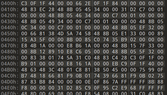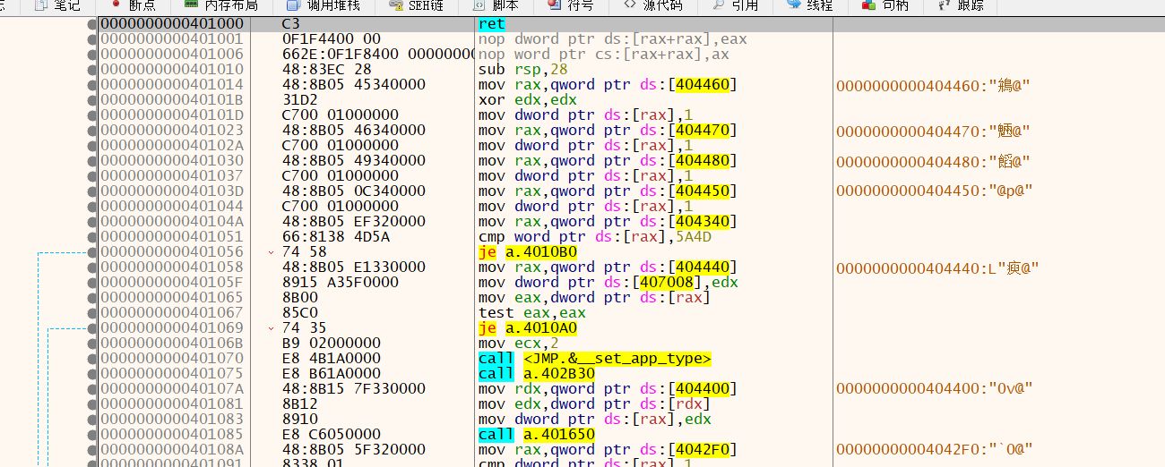 可以看到0x401000内容如下(ImageBase=0x400000),对应文件内容地址0x400开始