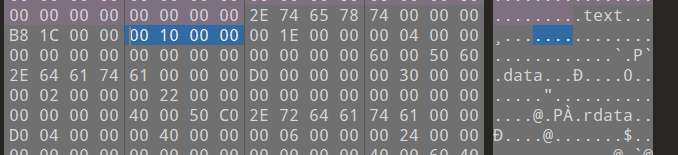 1 2 VirtualAddress = 0x1000 PointerToRawData = 0x400